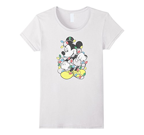 Womens Disney Mickey Mouse Christmas Lights T Shirt Small White
