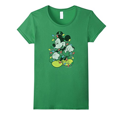 Womens Disney Mickey Mouse Christmas Lights T Shirt Small Grass