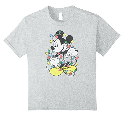 Kids Disney Mickey Mouse Christmas Lights T Shirt 10 Heather Grey