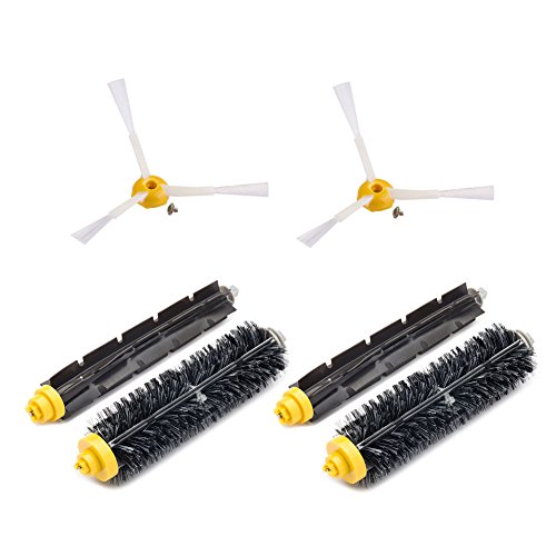-. Feature : Brand new brush set to Keep your Roomba operating at peak performance. / Made of high quality and environmental friendly materials. / Including 2pcs bristle brushes,2pcs flexible beater brushes, 2 sidebrushes, 2 screws. / Compatible with iRobot Roomba 650 630 614 618 620 610 600 770 780 790 761 700 Series / Shipping with high-quality safeguard box to prevent damages in transit.