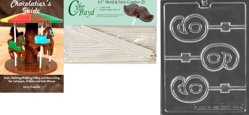Cybrtrayd 'No.6 Lolly' Letters and Numbers Chocolate Candy Mold with 25 4.5-Inch Lollipop Sticks and Chocolatier's Guide