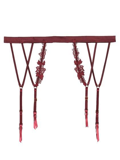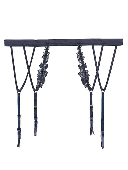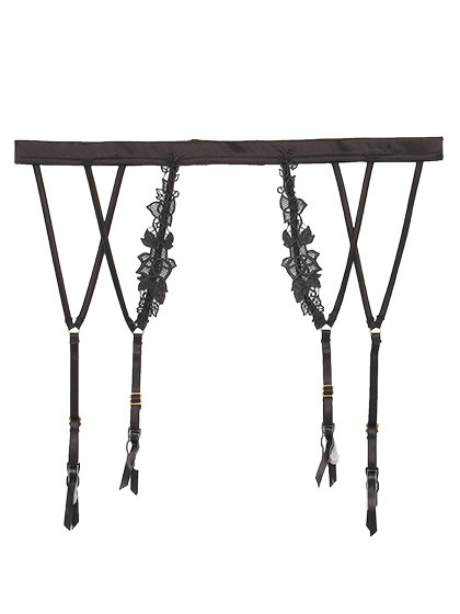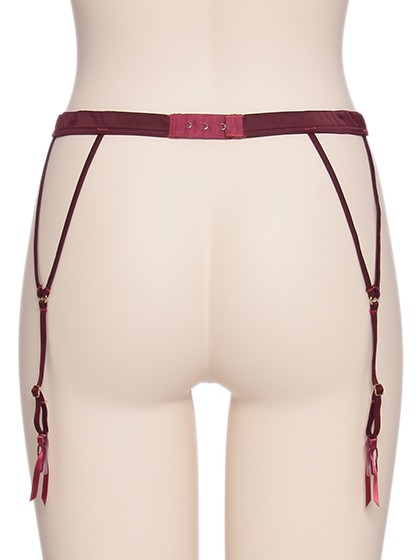 オリジナルのケミカルレースとストレッチサテンのコンビネーションを、シーズンカラーの濃色で堪能。華奢なバインダー使いは、下半身をスリムに見せてくれる。メタル部分はゴールドで、高級感のある仕上がり。