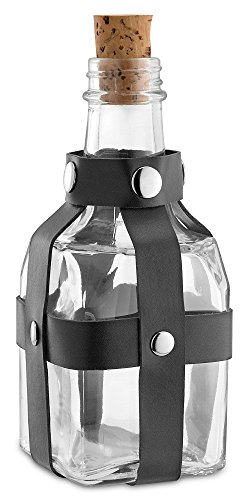 - 6 oz. Glass bottle features decorative leather bands wrapping it's sturdy rectangular body