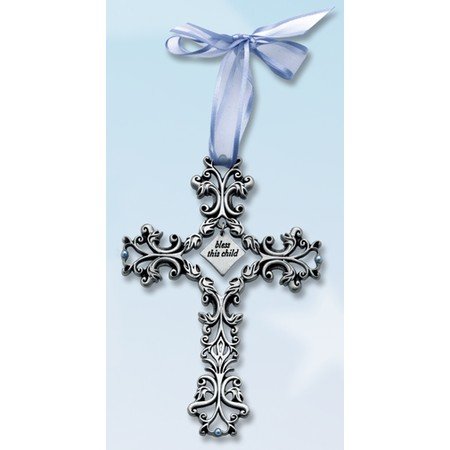 Cathedral Art FC302 Bless This Child Blue Ribbon Baby Cross, 5-Inch High