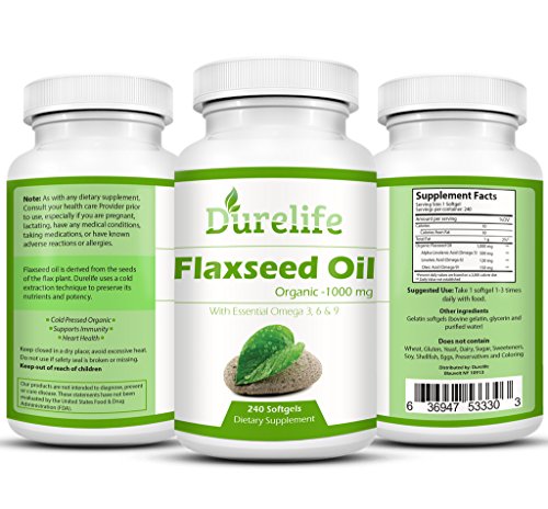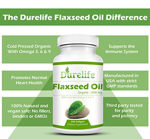✓ Durelife Flaxseed oil Is A Potent 1000 Mg Cold Pressed 100% Organic Flaxseed oil in Liquid Softgel Form.