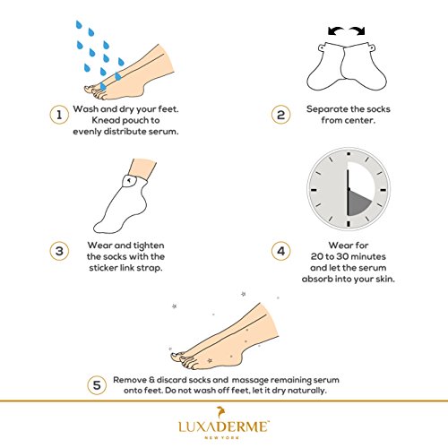 Studio : LuxaDerme Publisher : LuxaDerme Binding : Misc. Product Description Your feet take constant abuse daily. Give them a break with LuxaDerme Deep Moisturizing Foot Hydration Socks. These contain a nutrient and moisture rich solution ideal for those who look forward to pampering their dry, rough and tired feet. Direction for use : Cleanse : Wash and dry your feet. Knead pouch to evenly distribute the essence. Apply : Separate the socks from center. Wear and tighten them with the sticker link strap. Relax : Wear for 20 to 30 minutes and let the essence absorb into your skin. Renew : Remove and discard socks, massage remaining essence on feet. Do not wash feet after treatment, let them dry naturally. 0
