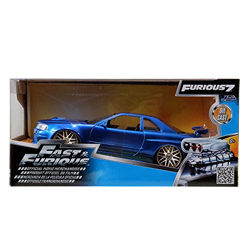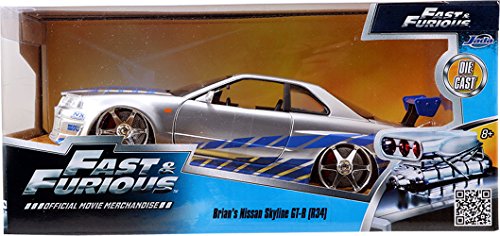 -. Binding : Toy -. Brand : Jada -. Label : Jada Toys - US -. Manufacturer : Jada Toys - US -. ProductGroup : Toy -. ProductTypeName : TOYS_AND_GAMES -. Publisher : Jada Toys - US -. Studio : Jada Toys - US -. Title : Jada Toys Fast & Furious 1 24 Diecast Nissan GT R R34 Vehicle