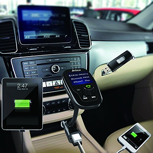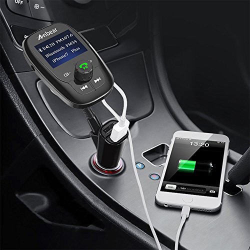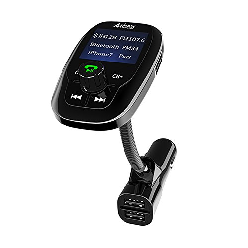 FM Transmitter Bluetooth,Anbear Wireless FM Transmitter Radio Adapter Car Kit with 1.44 Inch Display TF Card Slot and USB and Dual USB 5V/3.1A Car Charger