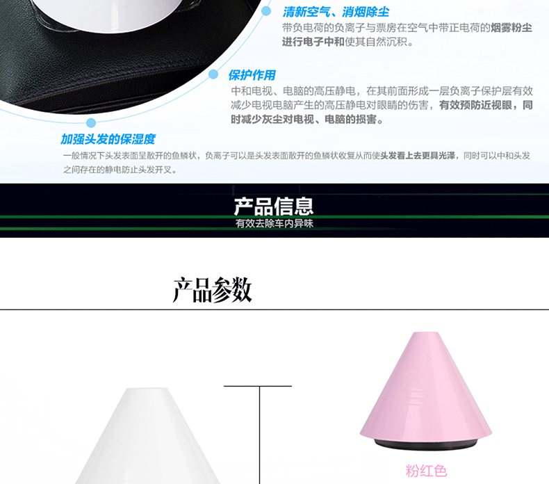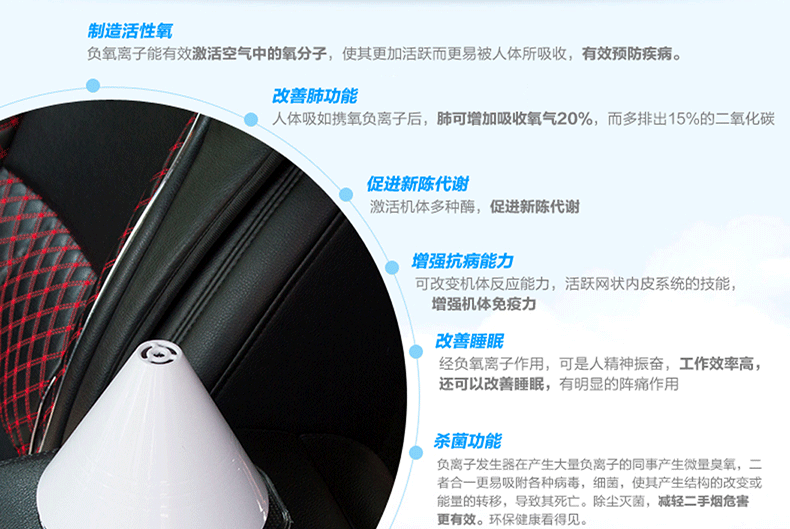 1. The fresh air, add negative ions, sterilization;