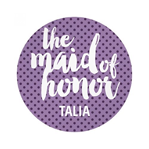 Binding : Apparel Product Description Planning the bride her bachelorette party? Make sure everyone in the bridal party has cute matching button pins to wear all weekend long. This purple polka dot pin is for the Maid Of Honor, Talia. How are you going to show off your team spirit? This rounded all over print sublimation button with pin is perfect to show some school pride. Cheer for your favorite team whether it is football, baseball, soccer, basketball, and more. Also great for birthday or bachelorette parties. 0