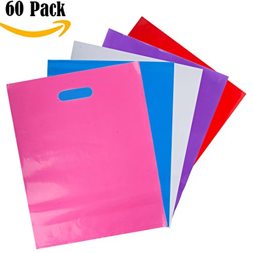 LazyMe Colored Merchandise Bags, Plastic Shopping Bags,8x12 inch, Flat High Density for Retailer & Party Favors, Multi Colors, 60 Pcs