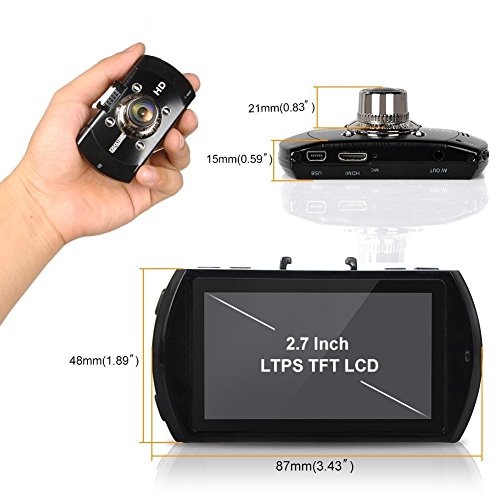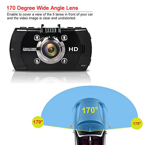 -. Feature : Built on Ambarella A7LA70 processor + OV4689 color CMOS sensor, captures 2K (2560*1080P & 2304*1296P at 30fps) HD video and outstanding night vision, plus WDR greatly enhancing the image quality. Enjoy the clearer footage to every detail! / 170-Deg. viewing angle presents a wide field of view and splendor scenario. The F2.0 Six Layer Optical Glass Lens, dust and heat proof, helps capture high quality images even in bad driving environment. / Auto starting record after powered provides a convenient use; seamless loop recording plus the G-sensor detecting any impact and auto locking the important video segments, you will never miss an important moment. / One press to switch the camera to Parking Mode, triggered by the motion detection sensor, the camera will auto record when people or things come closer to your car from 10M / 33FT away in front.. / 2.7" TFT LCD display supports video and image playback, and offers an easy setup convenience. Support a timeout function that turns the display off after the recording begins so you won't be disturbed by another glowing rectangle on your windshield.