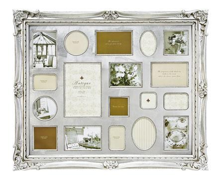重厚感のあるシルバーとゴールドに上品なアンティークバニラ。リッチな装飾に古きよきクラシックスタイルへの気分をゆだねて。 製造国:中国 素材・材質:合成樹脂、ガラス 商品サイズ:W57.5×H47×D4cm 仕様:18ウィンドー壁掛用、合成樹脂製マット付 ※サプライヤー直送品  ご注文後3~4営業日後の出荷となります【商品名】アンティークスタイルフォトフレーム 18ウィンドー AF-08001・シルバー