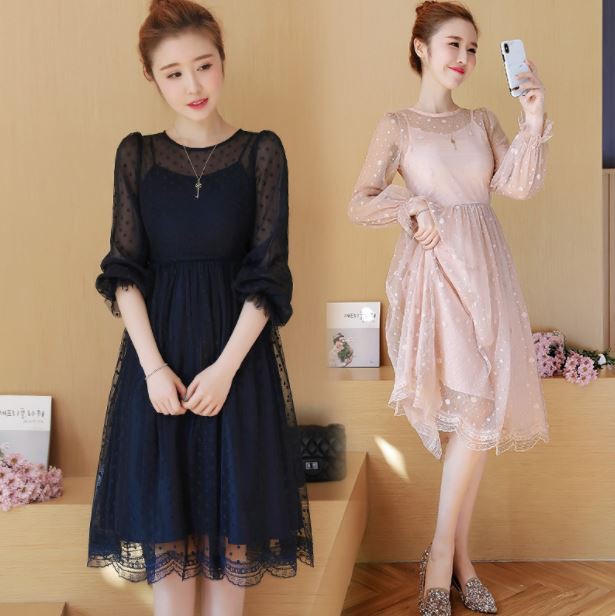 レースの透け感が大人かわいいひざ丈ワンピース☆