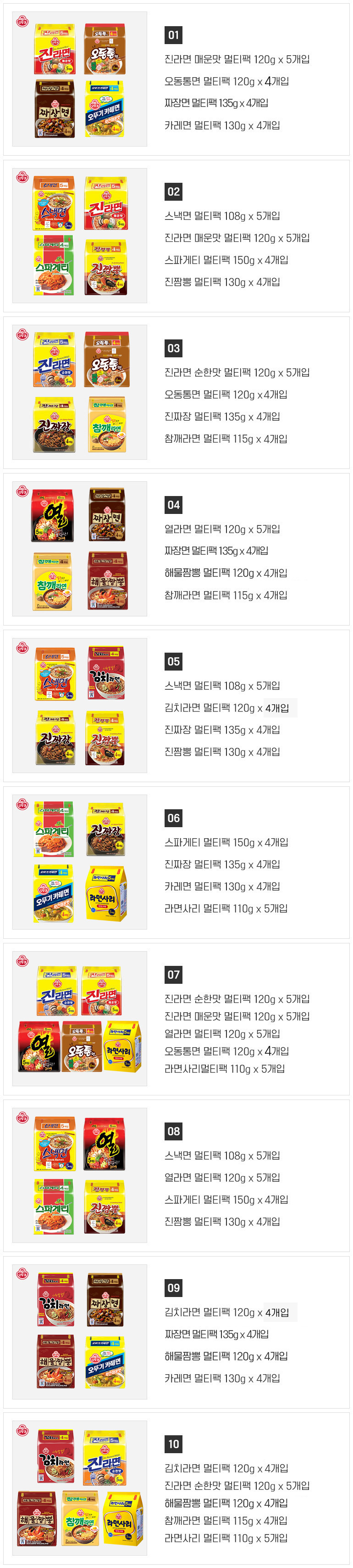 진라면/스낵면/열라면/오동통면/참깨라면/스파게티/진짜장/진짬뽕/카레라면/북경반점/김치라면/라면사리/북경반점짜장/북경반점짬뽕