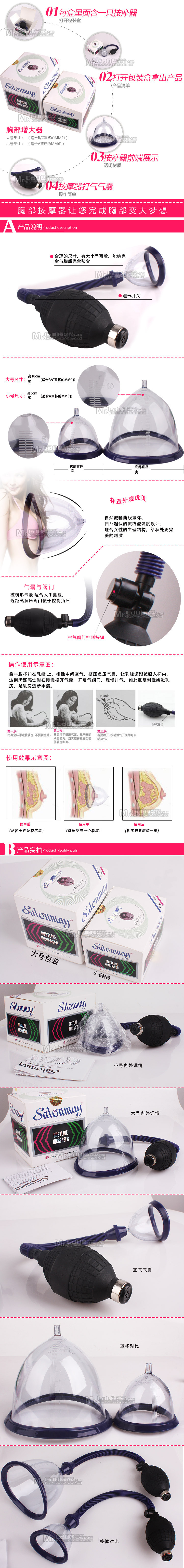 The first step: Wipe the Breast Cup match sealed with a good set of pads, the connectors, vacuum balloon together into a whole. Selected for individual breast size Breast cup on the breast, not allow leakage. (Scale up the cup wall, the nipple can be easily achieved by recording the size.)