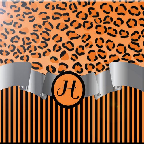Rikki Knight RK-8intilec-2319 8" X 8" Letter "H" Orange Leopard Print Stripes Monogram Design Ceramic Art Tile