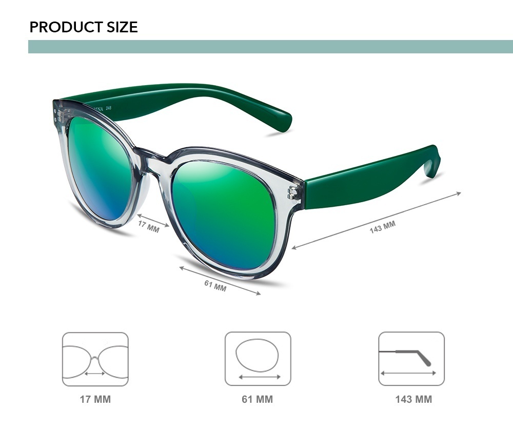 Kacamata QINA ini memiliki fitur CAT EYE yang sangat nyaman dan casual, dengan lensa POLARIZED dan proteksi UV 400. Frame TRANSPARENT dengan lengan kacamata HIJAU dan lensa HIJAU, menawarkan sentuhan yang unik, sesuai dengan segala style pakaian Anda. Datang dengan kantong designer premium yang unik dan colorful, serta kain pembersih GRATIS.