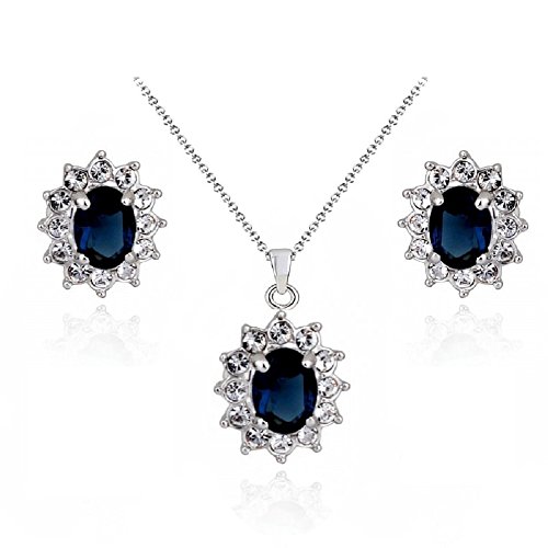 -. Binding : Jewelry -. Brand : Crystalline Azuria -. ClothingSize : All -. Color : Blue -. Department : womens -. Feature : Comes presented in a beautiful gift box with certificate, perfect for gifting or personal keeping. Beautiful and modern design suitable for ladies of any age who like the luxury. / Size: see detail photo, Length of the chain of the necklace 40cm+5cm. / Color: sapphire / Made of crafted environmental friendly Zirconia, this jewelry shines with grace and beauty. The metal surface is of high polished finish. -. Label : Crystalline -. Manufacturer : Crystalline -. ProductGroup : Jewelry -. ProductTypeName : FASHIONOTHER -. Publisher : Crystalline -. Size : All -. Studio : Crystalline -. Title : Blue Simulated Sapphire Zirconia Austrian Crystals Elipse Set Pendant Necklace 18" Earrings 18 ct White Gold Plated