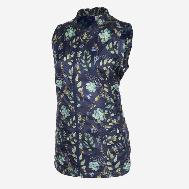 독특한 패턴 장식으로 산뜻한 외관을 보여주며 주름넥으로 편안한 착용감을 선사하는 베스트입니다.