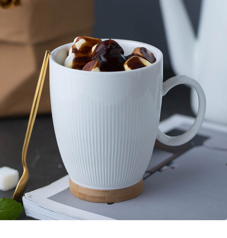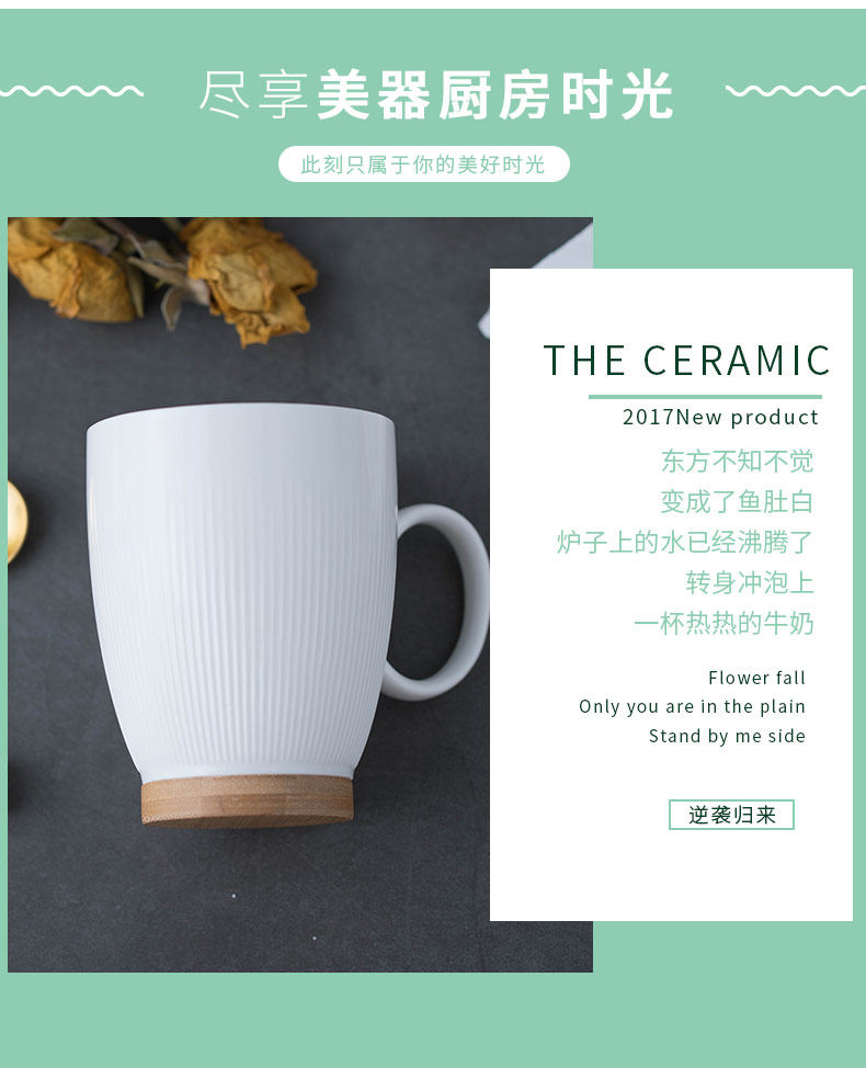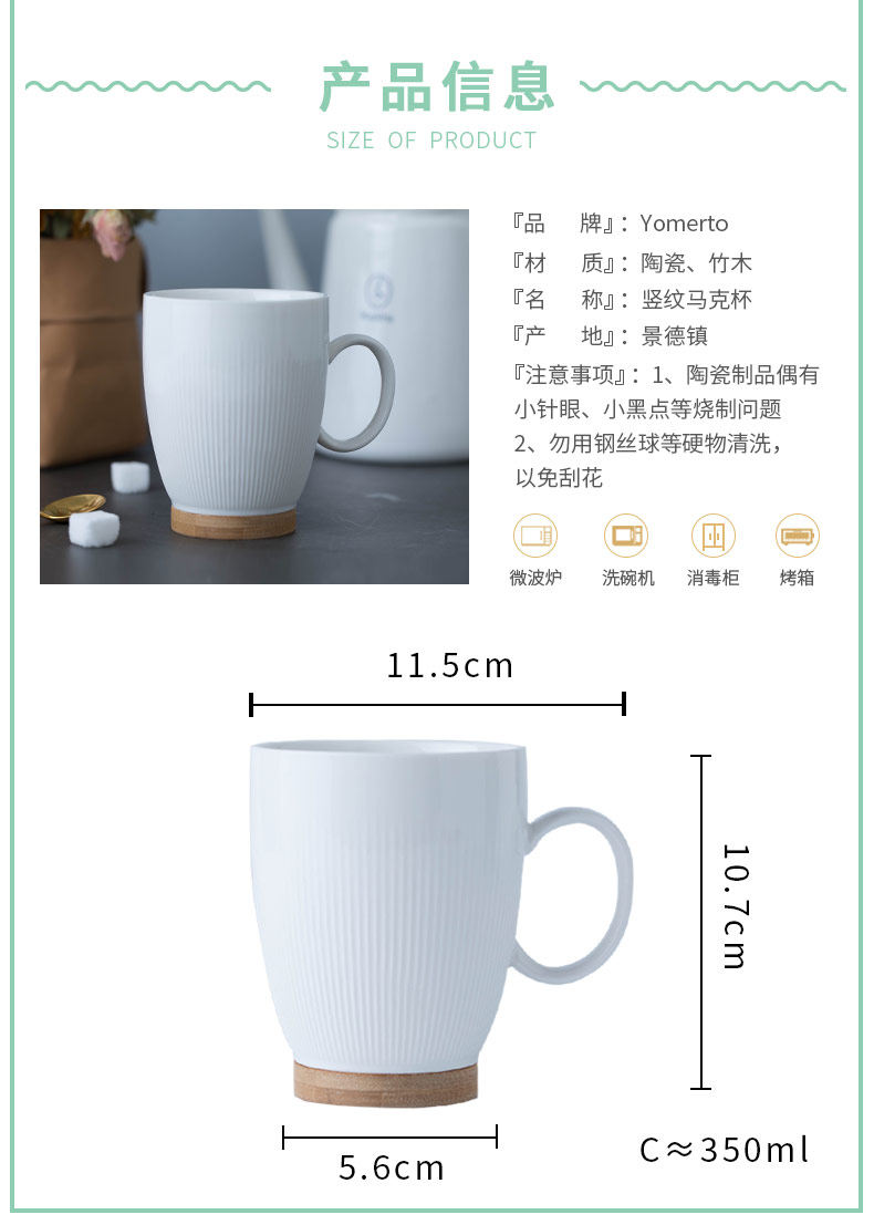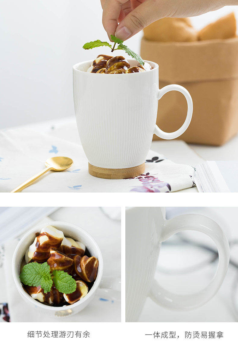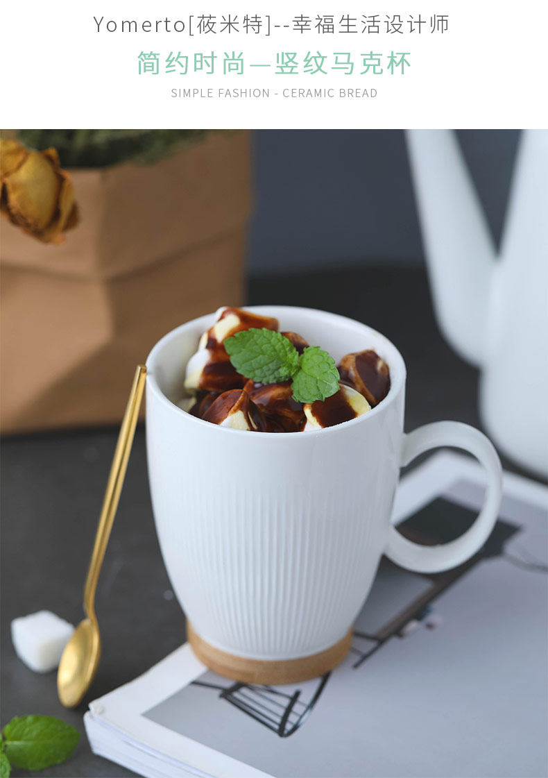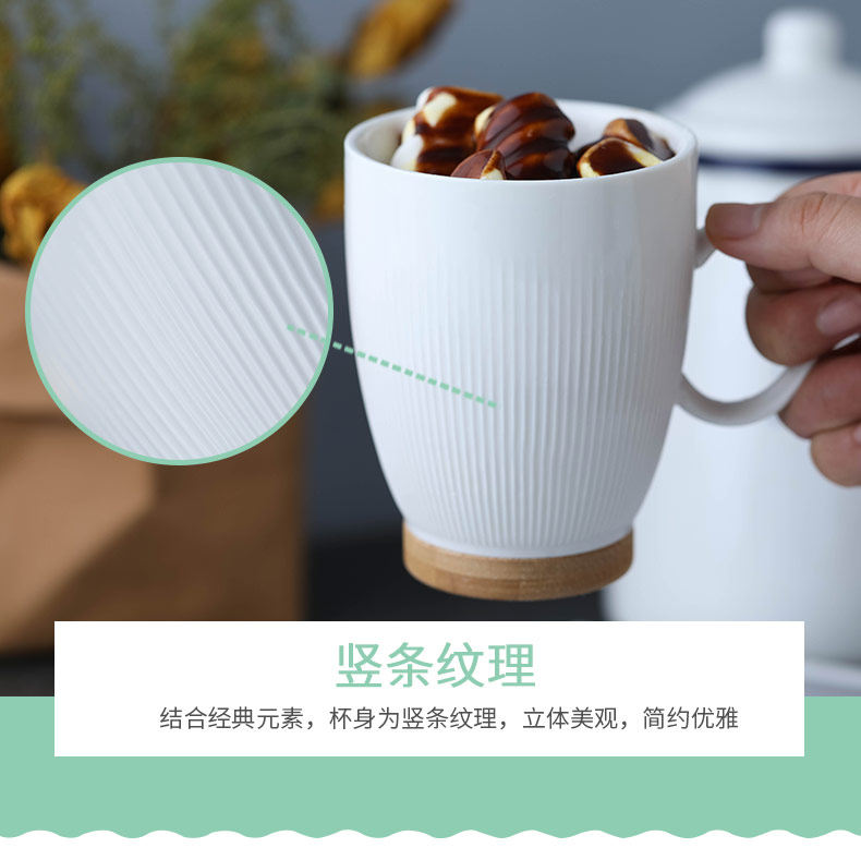 个性简约白瓷杯竖纹ins喝水杯家用韩式景德镇