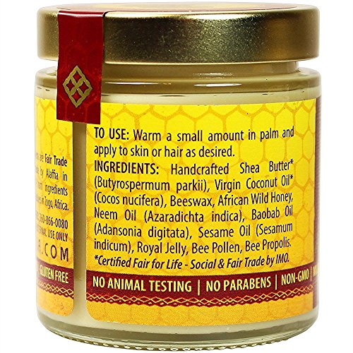- PURE & SIMPLE: Contains only shea butter, coconut oil, beeswax, African wild honey, neem oil, baobab oil, sesame oil, royal jelly, bee pollen, bee propolis