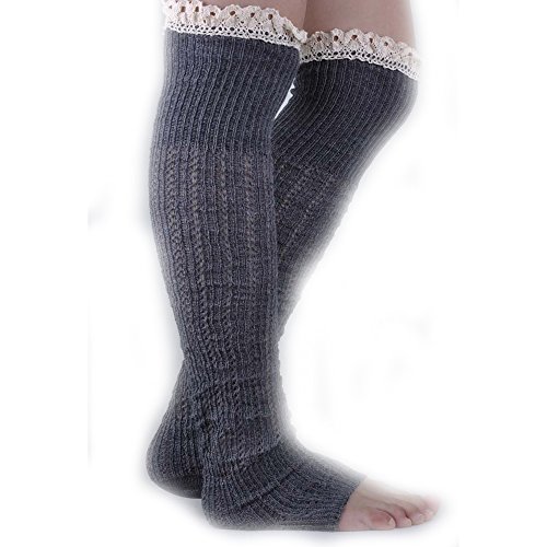 -. Title : RICCOS (TM) Women's Fashion Winter Knitted Lace Stretchy Warm Knee High Boot Toppers Leg Warmers (Dark Grey)