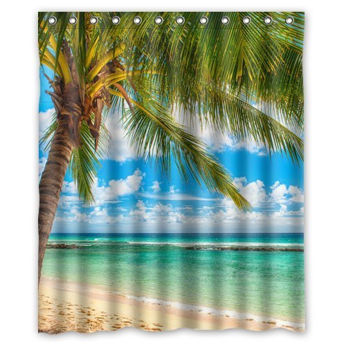 Summer Beach Blue Sea Palm Tree Waterproof Polyester Fabric Bathroom Shower Curtain with 12 Hooks 60"(w) x 72"(h)- Bathroom Decor