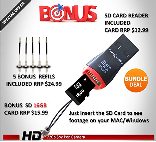 FabQuality Special Offer 1 DAY Only! Hidden Camera Spy Pen 720p BUNDLE 16GB SD, Real HD Voice Video & Image + SD Reader + Upgraded Battery + 5 ink Fills Inc! Executive Multifunction DVR A Perfect Gift