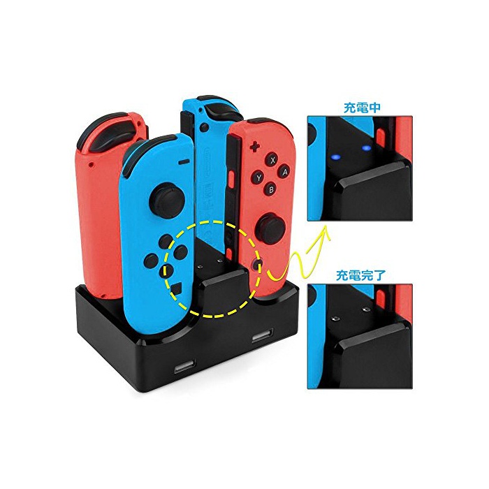 【동시 충전 가능】 최대2세트 (4개) 의 Joy-Con을 동시 충전으로 옵니다.충전 중은 LED라이트는《렛토라이토》이 붙고, 충전 완료는《렛토라이토》이 끕니다.