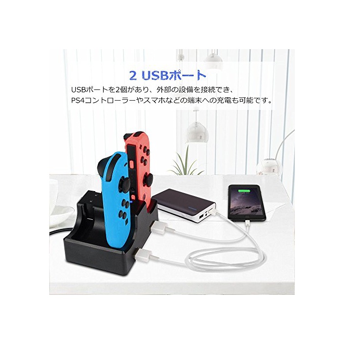 원본상품명: Nintendo Joy-Con 充電 スタンド 置き 4つ同時充電 2win2buy チャジャ 2USBポト 80cmUSBケブル付き 充電ホルダ 充電指示ランプ 充電器