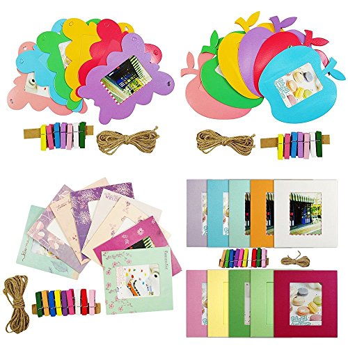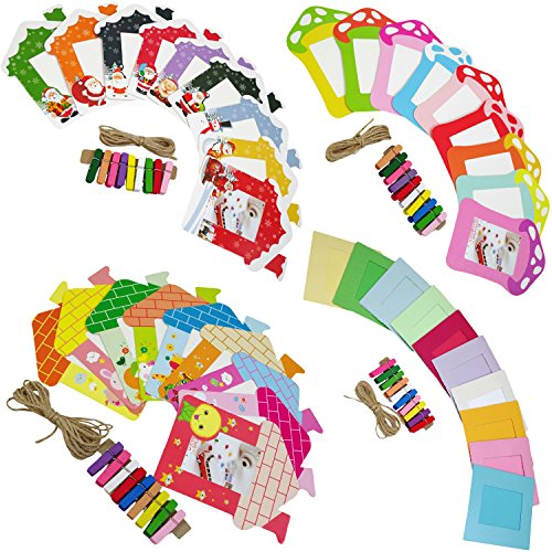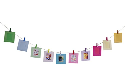 Set comes with: 37 colorful wall decor hanging frame, 37 mini multi-color wooden clips, 4 hemp ropes . Color frames sheets design may differ to what is in stock.