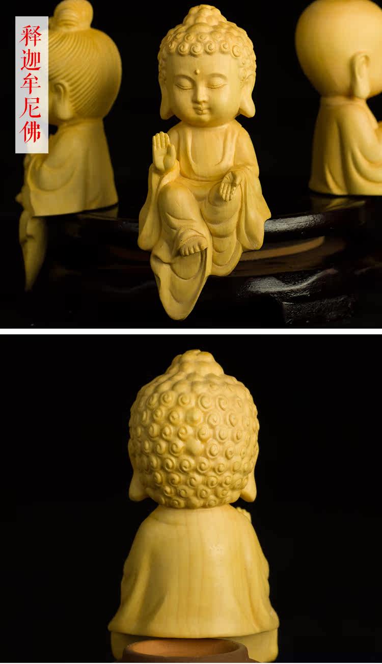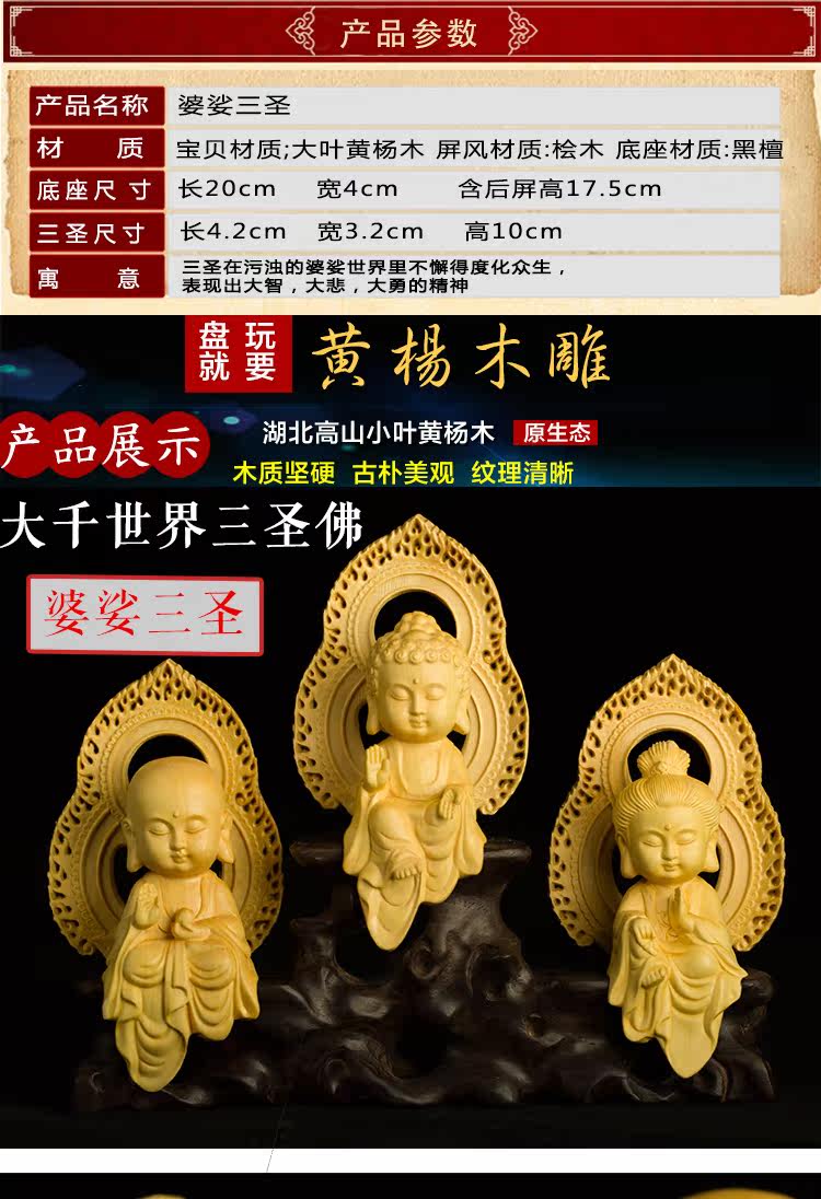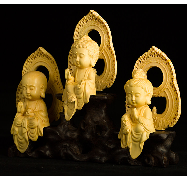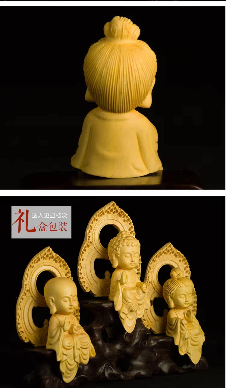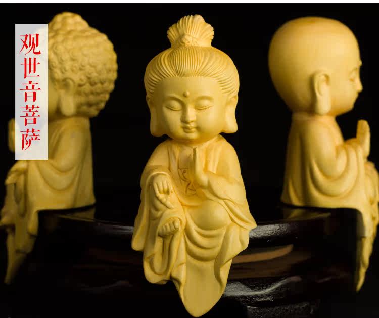 黄杨木雕Q版婆娑三圣地藏王观音菩萨摆件佛像工艺品手把件收藏品