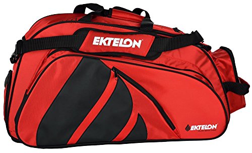 -. Binding : Misc. -. Brand : Ektelon -. Color : Red/Black -. EAN : 0091001178843 -. Feature : true Touring bag designed to carry four different ways while you take your game on the road / 2 separate racquet compartments / 2 front accessory compartments / ventilated shoe/wet clothes compartment / padded carrying handles - see full description -. Label : Ektelon -. Manufacturer : Ektelon -. MPN : 6E167613 -. PackageQuantity : 1 -. PartNumber : 6E167613 -. ProductGroup : Sports -. ProductTypeName : SPORTING_GOODS -. Publisher : Ektelon -. Studio : Ektelon -. Title : Ektelon Team Tour Bag -. UPC : 091001178843
