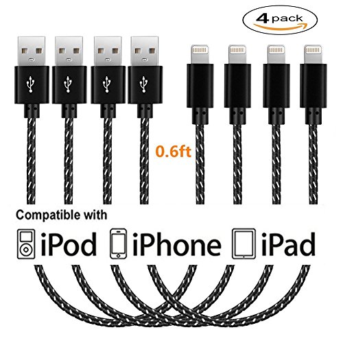 [4-Pack] Lightning Cable 7.3 Inches Short USB Charging Cord for iPhone iPad iPod Touch (2T) by moonship (black)