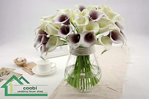 Coobl Artificial silk flower Senior callas PU material flower wedding bouquet bride holding garlands vine DIY Floral art plant bride Home Decor(24pcs) (purple)