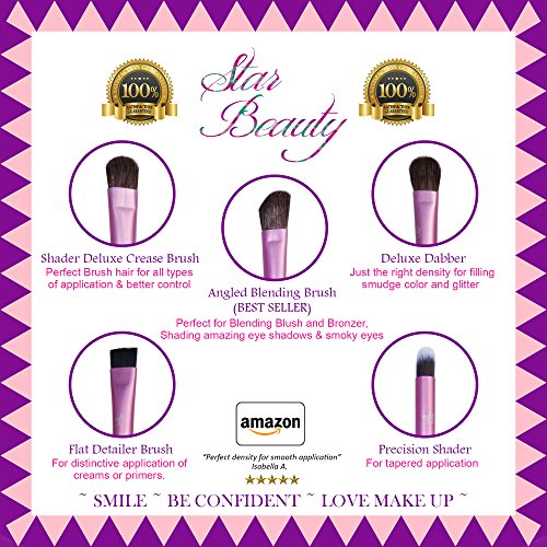 Star Beauty Eye Shadow Brush Set 5pcs ESSENTIAL Premium Quality Synthetic Brushes for EyeShadow Crease...