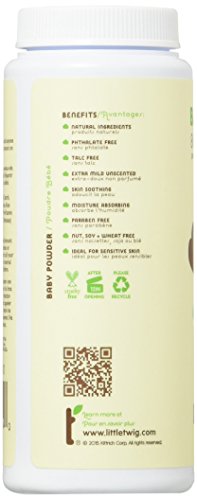 -. Binding : Health and Beauty -. Brand : Little Twig -. EAN : 0764999819240 -. Feature : This is a bottle of 100% pure and natural Earth's Care Grapeseed Oil / Our talc-free formula contains green clay and cornstarch to absorb moisture and aloe to soothe the skin / Newborn and up -. IsAdultProduct : 0 -. IsAutographed : 0 -. IsMemorabilia : 0 -. Label : Little Twig -. LegalDisclaimer : Actual product packaging and materials may contain more and different information than what is shown on our website. We recommend that you do not rely solely on the information presented and that you always read labels, warnings, and directions before using or consuming a product. Please see our full disclaimer below. -. Manufacturer : Little Twig -. Model : BP500 -. MPN : BP500 -. NumberOfItems : 1 -. PackageQuantity : 1 -. PartNumber : BP500 -. ProductGroup : Health and Beauty -. ProductTypeName : HEALTH_PERSONAL_CARE -. PublicationDate : 2014-12-22 -. Publisher : Little Twig -. ReleaseDate : 2014-12-19 -. Size : 5 oz -. Studio : Little Twig -. Title : Little Twig All Natural Baby Powder, Unscented, 4.5 Fluid Oz -. UPC : 767644703000