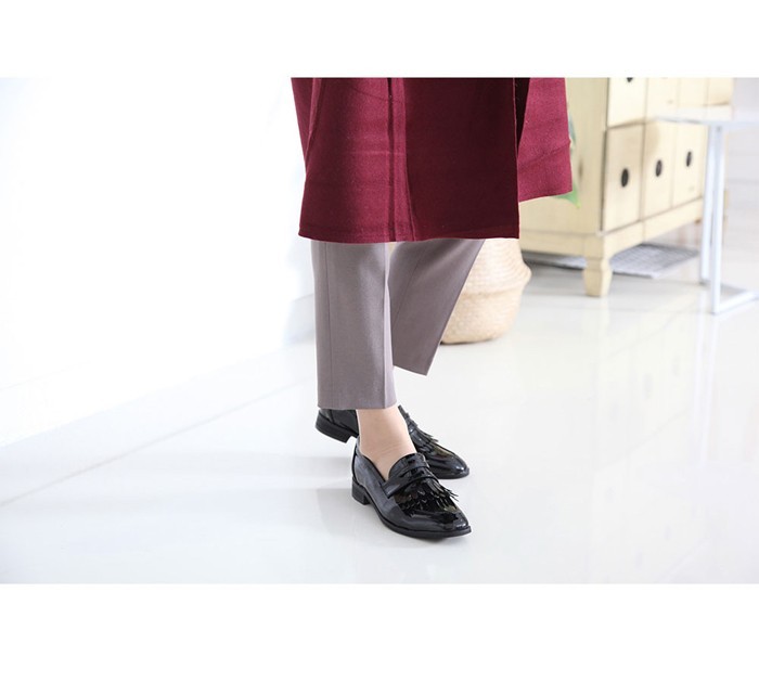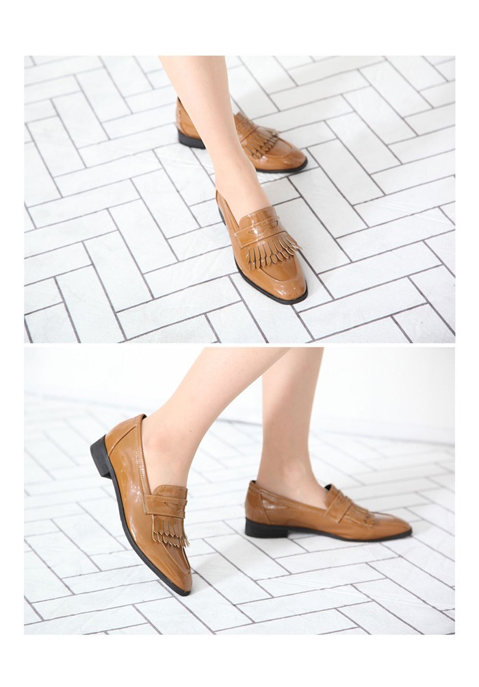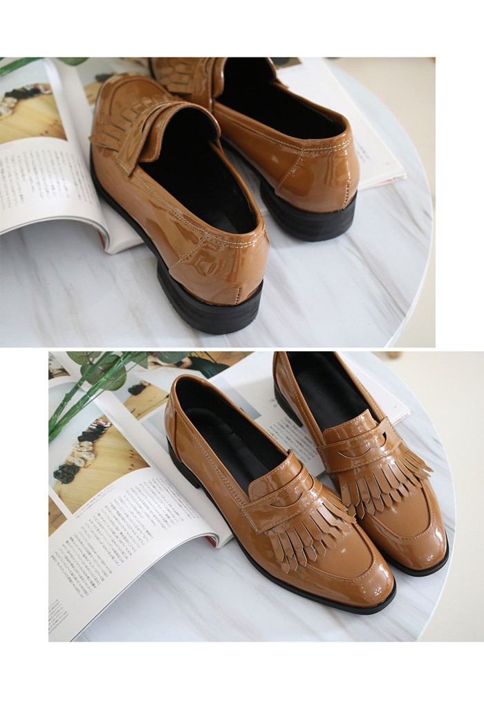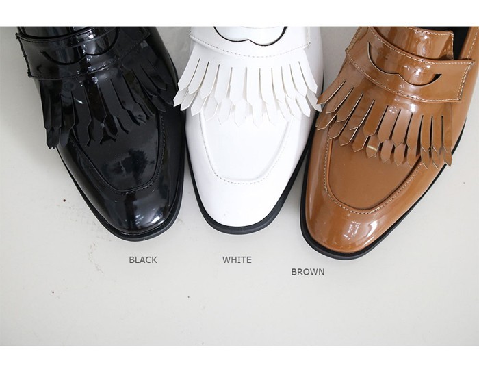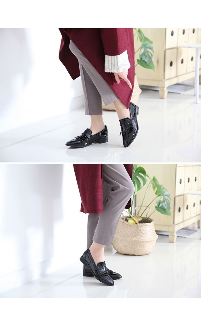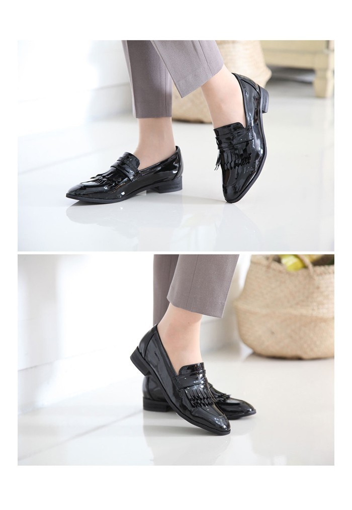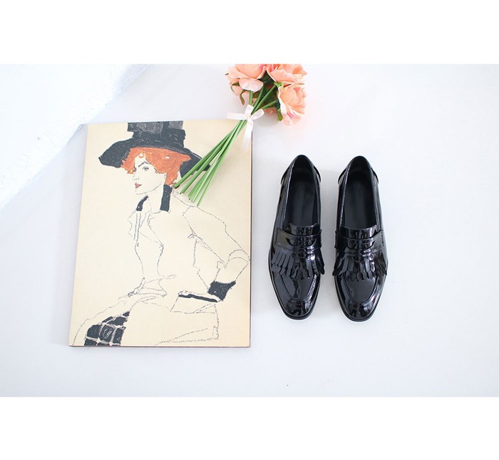 商品名:ローファー レディース フリンジ エナメル調 ローヒール 2017 秋 冬 ファッション 靴 婦人靴
