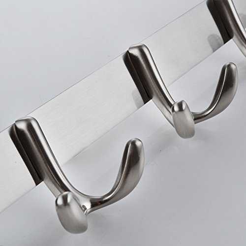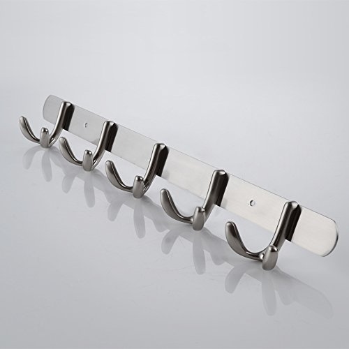 XVL WALL MOUNTED TOWEL HOOK RAIL COAT RACK WITH 5-DOUBLE HOOKS, BRUSHED NICKEL G105N