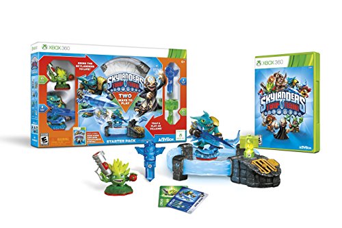 Starter Pack includes: 1-Video Game, 1-Traptanium Portal, 2-Skylanders Figures, 2-Traps, 1-Character Collector Poster, 2-Sticker Sheets with Secret Codes and 2-Trading Cards.