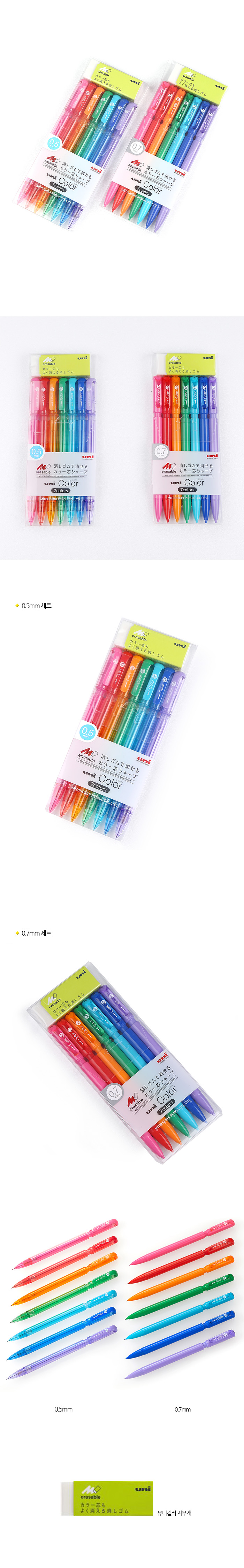 유니컬러 샤프 세트에는 '컬러샤프 전용 지우개'인 유니컬러지우개도 같이 들어있어 완벽한 세트를 구성하고있습니다.