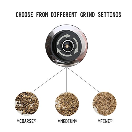 SAY GOODBYE TO CHEAPLY CRAFTED PRODUCTS: Do you have a passion for high quality kitchen utensils? Now, you are given the chance to own the highest quality kitchen gadget that is never going to get broken or rusty! Our top-notch pepper mill is constructed by premium quality materials; an acrylic body and a ceramic rotor are featured, while it’s made from brushed stainless steel!