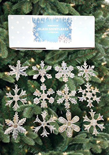 INCLUDED - 12 Glass Snowflakes (All Unique Designs As Shown)