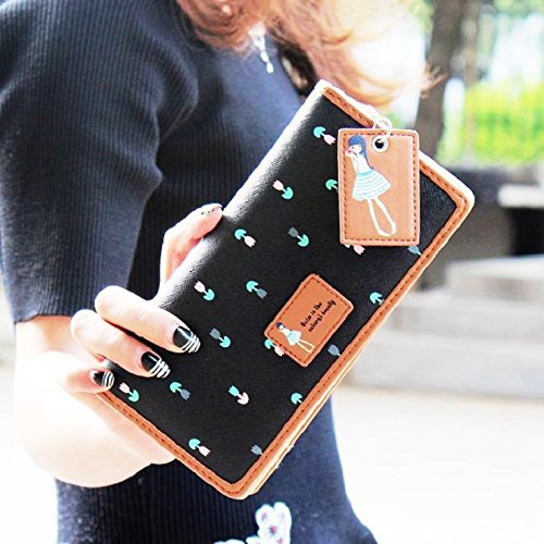 BESSKY 2015 Fashion Women Long Purse Clutch Zip Bag Card HolderWallet (Black)
