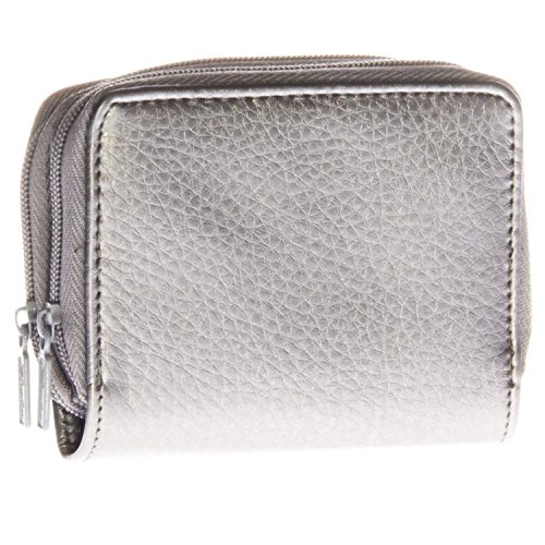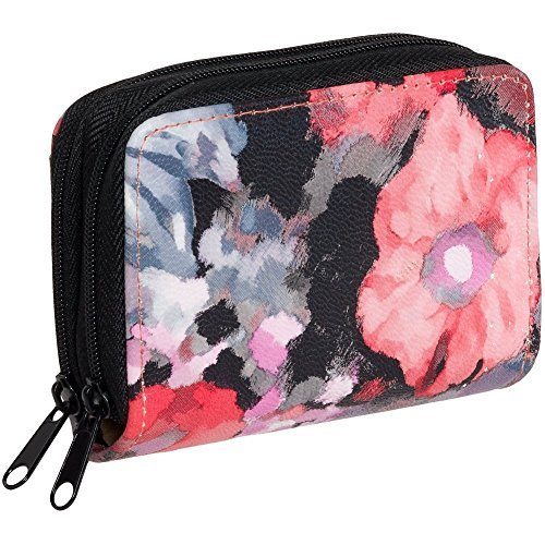This Double Zip RFID Wallet by Buxton is a stylish and trendy way to stay organized on-the-go. This animal friendly faux leather wallet features two zip around compartments for extra secure storage. This adorable and compact wallet features RFID blocking technology to guard your credit cards from identity thieves with external scanning devices, or electronic pickpocketing. The first compartment includes 3 divided pockets where you can store anything from cash to gift cards. The additional gusseted compartment has 12 accordion style card slots to help keep your belongings organized. The exterior of the wallet features a clear finger glide ID window. Measures 3.5" x 4.5" x 1