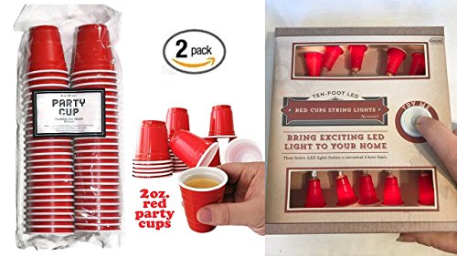 Battery String Lights - Mini Red Cups - These Fun Red Cups And String Lights Are Perfect For Your Next Party - LED String Lights - Disposable Shot Glasses