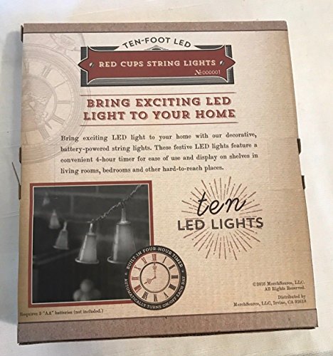 Mini Red Cups LED String Lights 10 feet of lighting. Battery Powered - 3AA each 10Ft (10 Lights per Box)