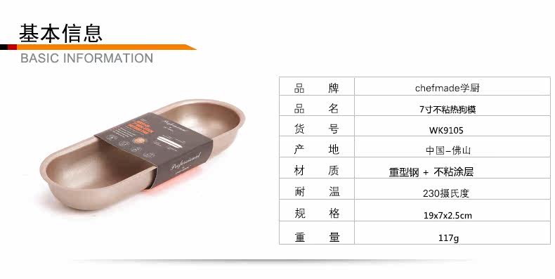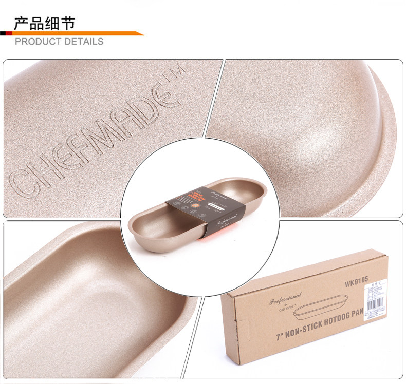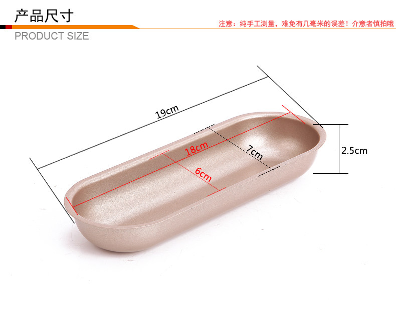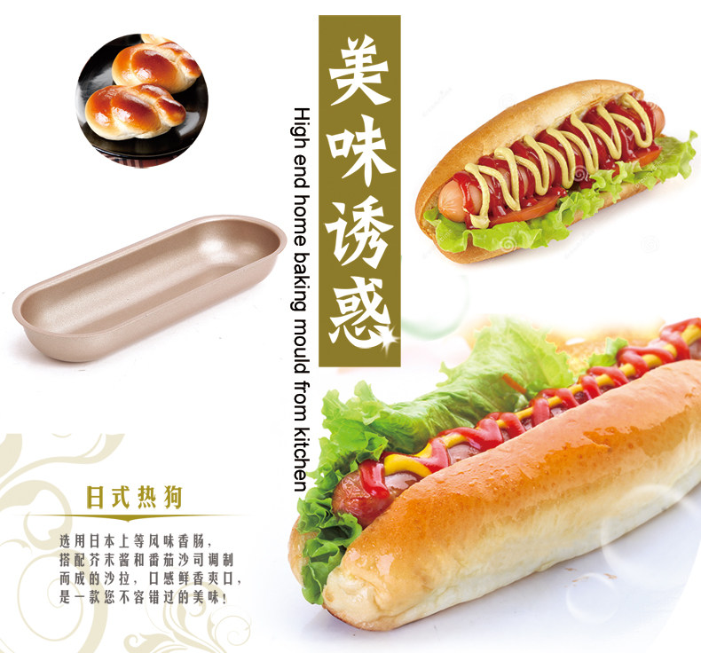 金色7寸不粘热狗模具椭圆长条面包土司模 专业系列