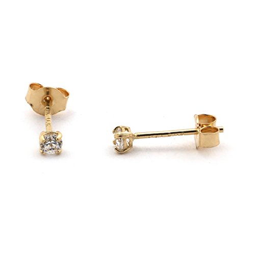 -. Title : 14k Yellow Gold 2 mm 0.06ct Tiny Basket set Round CZ Cubic Zirconia Stud Earrings